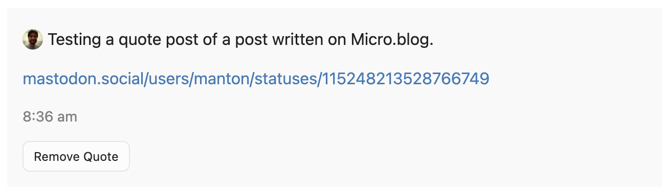 - Micro.blog posts that are sent to the fediverse can be quoted by default.