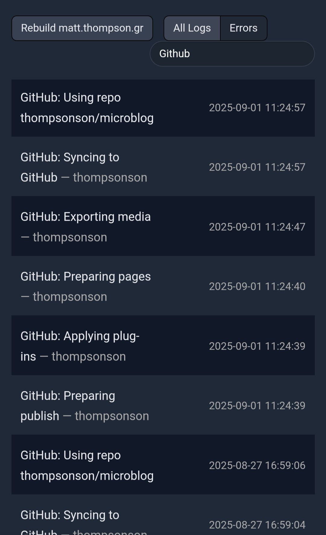 I set up the GitHub archive a little while ago and, checking in now, I see that it isn’t working.