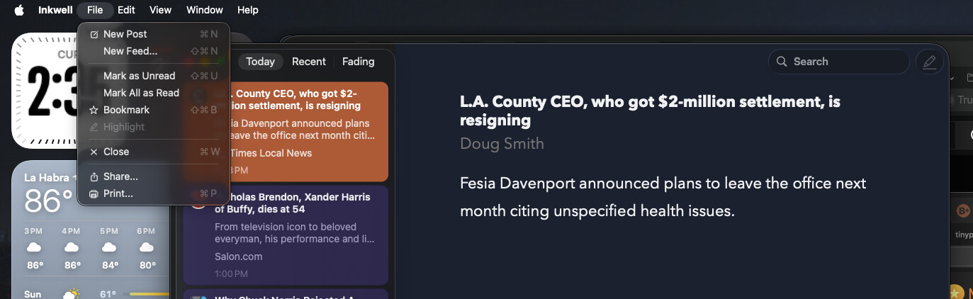 Post-update, when I open the article to read in Safari, it now stays in the article list and New Post works. Even though I just use the keyboard shortcut, I noticed the New Post icon in the reader pane is inactive. Then I realized that it’s not a New Post icon, but the Highlighter