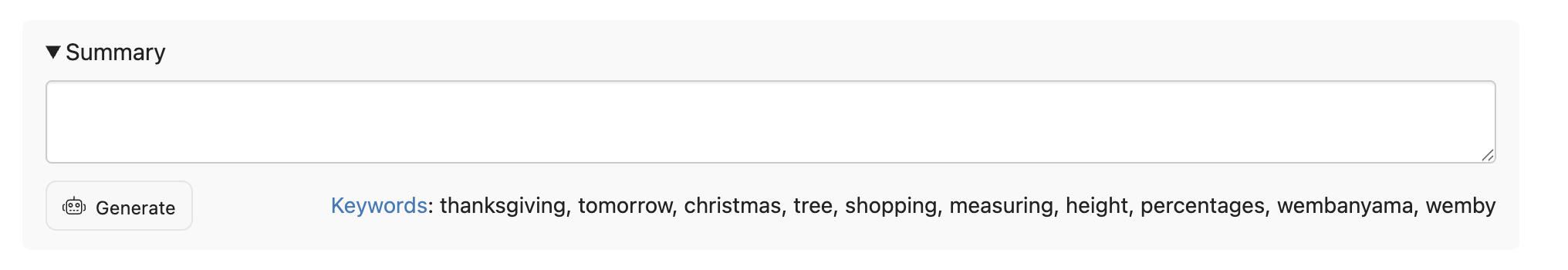 If you have AI enabled for your account, Micro.blog Premium will generate keywords for each of your blog posts. You can use these keywords with category filters, automatically setting categories based on the content of your posts.