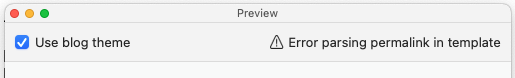 I just noticed that the Micro.blog Mac app has a feature I don’t see on the web interface I usually use. I can preview using my site’s CSS. Nice. When I tried to use this feature for my newsletter site, which uses the Mythos theme, I got the error in the attached screenshot. I don’t know if that error relates to the theme template or to the newsletter template. I also don’t know if this is something I can address or if this is something for @Mtt or for @manton. Just thought I’d make a note of it here for now.
